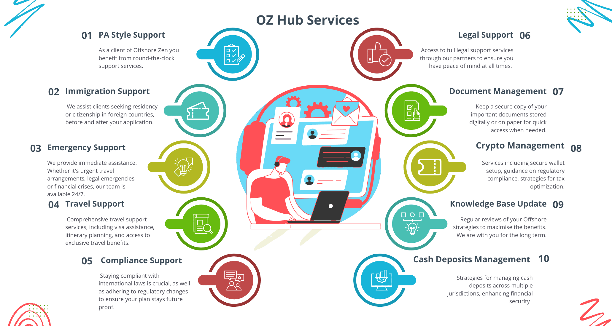 Our client Hub offers Personalized Assistance, Full Crisis Support, Efficient Solutions, and time and cost savings. Delivered across timezones concierge style.